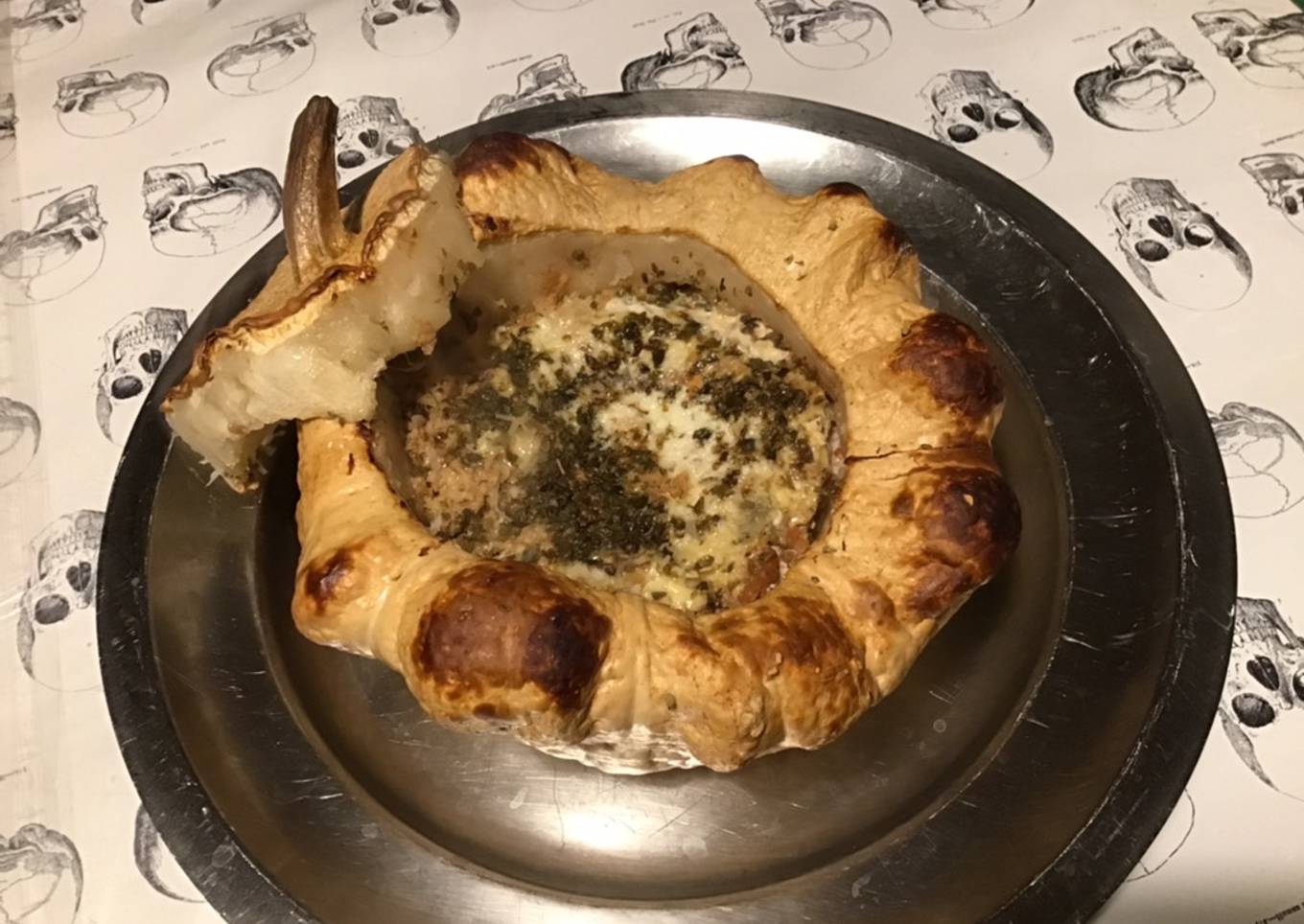 Instructions to make to make Pâtisson au four,farce maison et pecorino