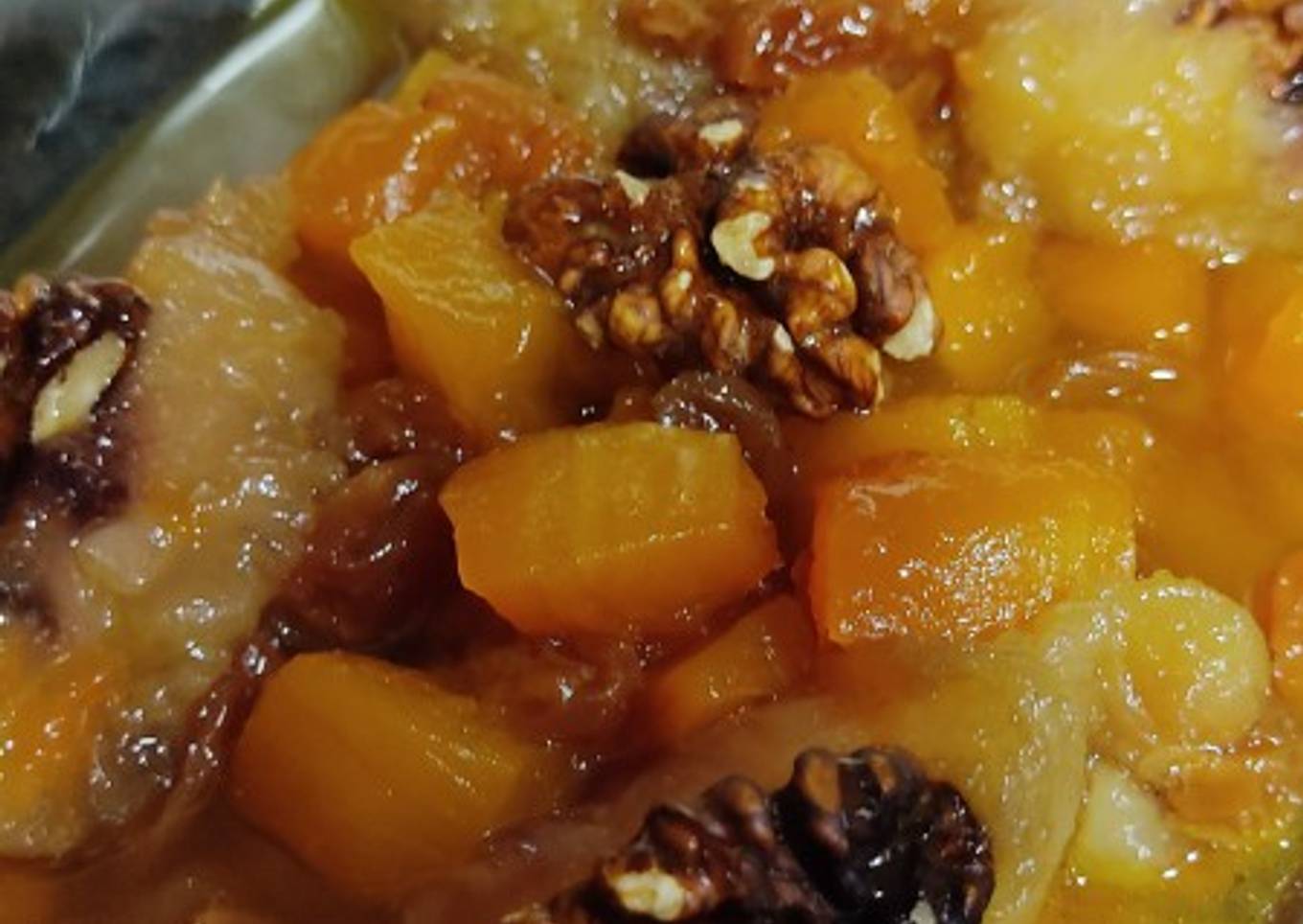 Steps to make to make Potiron sucré aux raisins secs et pêche